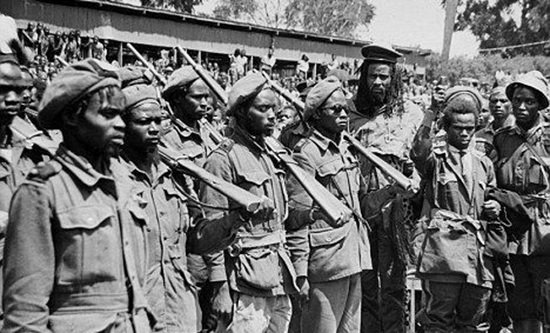 Kenya was colonised by the British from 1920 to 1963. It’s near impossible not to read Duranni’s sweeping 2018 study of the 1948-1963 independence struggle without seeing parallels to what was happening a decade earlier in Nazi Germany. Durrani himself is not shy of this comparison, entitling one section of his book ‘Fascism Has Come To Kenya’. Pro-independence Kenyans were systematically rounded up and killed on a vast scale. Dowden (The Guardian, 2005) suggests, ‘more than one million people were crammed into heavily guarded camps where starvation and disease killed thousands’. Meanwhile, Mau Mau sympathisers in the neighbouring countries of modern-day Tanzania and Uganda were rounded up and deported back to suffer in the British concentration camps of Kenya.