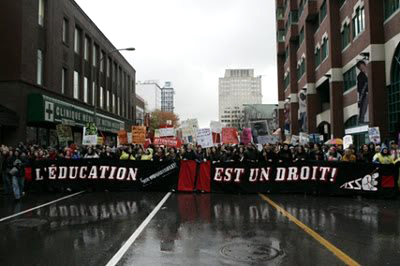 On 22 May 2012, up to 500,000 people took to the streets of Montreal to mark 100 days of student strikes in the Canadian province of Quebec. The strikes are led by the radical student-union coalition CLASSE (La Coalition large de l’ASSÉ), involving up to 200,000 students in the province. There have been nightly demonstrations in Montreal and violent confrontations between students and the police. The determination of Quebec students to resist plans to restructure education has received support from airline workers whose jobs are under threat, with whom the students have also expressed solidarity. High school students have also taken part in the strike.
