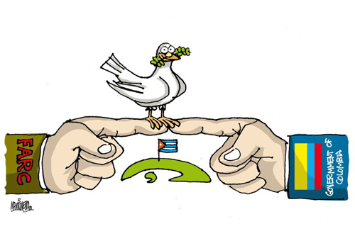 For 50 years the ruling class has attempted to cheat, seduce and butcher its way to an impossible victory over the FARC, including two previous long periods of negotiation, and has come to realise that it simply cannot defeat it, and smaller revolutionary groups like ELN, by force. FARC has struggled for 50 years to defend the peasants of Colombia from violent expulsion from their plots by large landowners and in so doing to create a genuinely democratic state. FARC has constantly sought peaceful negotiations in the face of state attempts to exterminate all armed defence of the small peasantry, landless workers and indigenous peoples.