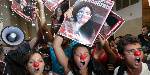 Protests followed Sanchez to Spain, where the meeting she addressed was almost empty and so many thousands of people tweeted critical questions that her links to the CIA became a ‘trending topic’. In Mexico, she was met by protesters on arrival at the meeting with SIP IAPA, who pay her $6,000 a month. Whilst appealing to the Mexican government to push Cuba on the question of human rights violations, she refused to meet the families of murdered Mexican journalists.