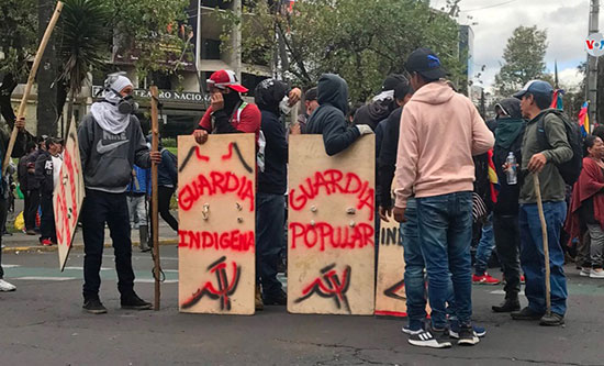 Desperate, Moreno accused former President Correa, Venezuela’s President Maduro, Colombia’s ELN and FARC and the Latin Kings, a former gang, now a legal cultural group, of promoting the demonstrations and attempting to overthrow the government. Anti-Correa propaganda was carried on nationwide broadcasts. In Quito protesters briefly occupied the National Assembly on 8 October, before security forces removed them. Moreno’s government fled from Quito to Guayaquil, imposing a night-time curfew around key state buildings. As protests continued further curfews were imposed and defied.