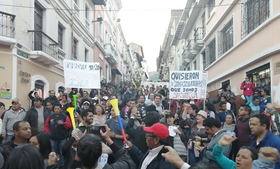 A March 2019 poll by Perfiles de Opinion revealed that only 17% of citizens endorsed President Moreno. In April thousands of workers marched in opposition to his right-wing government and its deal with the IMF. Protestors carried banners and placards with slogans including ‘Out with Moreno, out with the traitor,’ ‘IMF + World Bank = terrorists,’ and ‘Free Assange.’ They were met with violence from riot police, who attacked demonstrators with batons and tear gas.