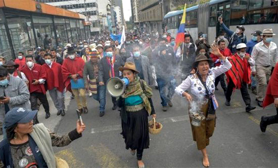 By 17 June over 20 more indigenous activists had been detained. Lasso and the ruling elite have attempted to threaten the indigenous movement through state repression. The ruling elite’s attempt to demoralise the indigenous movement backfired and strengthened the resolve of protesters. Five days after the strike began, on 18 May, Lasso declared a state of emergency, an executive decree which allows the president to suspend the right to assembly and receive military support in times of disturbances or natural disasters.