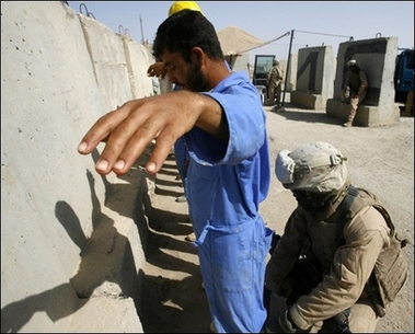 Photo: US soldier harassing Iraqi workers in Fallujah, 2007
