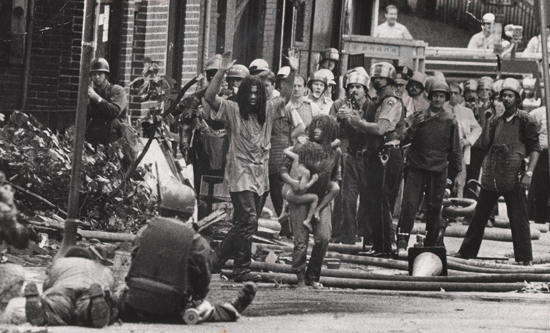On 13 May 1985, after years of police brutality against MOVE, the state police shot 10,000 rounds of ammunition into the MOVE house, before dropping a bomb on its roof. This horrific attack resulted in a blazing fire and ultimately the deaths of six adults and five children. Among the dead was John Africa. The only survivors of the bombing were Birdie Africa, aged 13, and Ramona Africa. Following the attack Ramona was hospitalised for a month with severe burns and taken into custody before being given a seven-year sentence for ‘inciting a riot’.