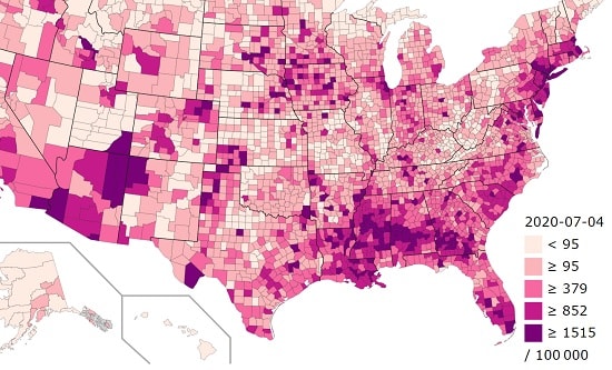 The epicentre of the disease has now shifted firmly South and West, to the ‘sun belt’. In the hardest-hit states, Covid-19 countermeasures are being hurriedly reintroduced. Louisiana has re-closed non-essential businesses, and the three most populous US states, California, Texas and Florida, are considering a second lockdown. Medical infrastructure in these states cannot cope – in Texas, where lockdown restrictions were lifted faster than much of the rest of the US, ambulances have been turned away from hospitals and basic medical supplies are unavailable.