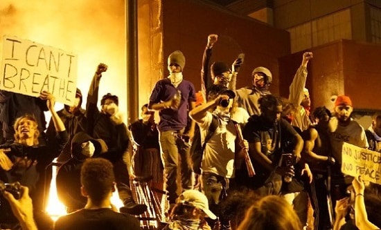 The trigger for the protests was the murder of George Floyd by Minneapolis police on 25 May, after he was he was alleged to have used forged money in a supermarket. Police initially claimed the unarmed Floyd resisted arrest. However, video footage shows this was a blatant lie. One officer knelt forcefully on Floyd’s neck for over eight minutes as Floyd pleaded ‘I cannot breathe’ and ‘Don’t kill me’. Witnesses can be heard yelling at officers to get off Floyd, who finally lost consciousness. On 26 May the police called Floyd’s death the result of his ‘suffering from medical distress’. Video footage of the killing was posted on Facebook and, on that day, demonstrators marched on Minneapolis 3rd Police Precinct. A black CNN TV crew was arbitrarily detained while covering the protests. On the third successive night of demonstrating and fighting against the police the protesters succeeded in having Derek Chauvin, the officer who knelt on Floyd’s neck, arrested and charged with murder. The other three police are still to be charged, although all four have been sacked.