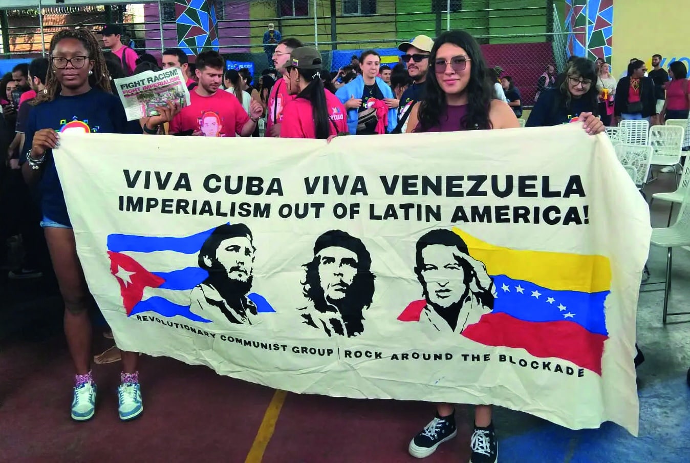 Comrades from the Revolutionary Communist Group and our Cuba solidarity campaign Rock around the Blockade were invited to attend the World Conference of Anti-Fascist Youth and Students in Caracas at the end of November 2024, a recognition of our consistent solidarity over decades with the Bolivarian Revolution. Over two weeks, we had the opportunity to exchange ideas with 500 delegates from 75 countries, as well as hundreds of Venezuelan socialists and activists from across the country. On the fringes of the meeting, we were able to speak to the Palestinian revolutionary, Leila Khaled. On 23 November, the conference was addressed by Venezuelan President Nicolas Maduro, with the words: