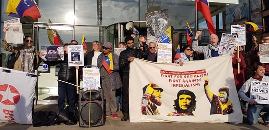 The Revolutionary Communist Group will continue to take action in solidarity with the Bolivarian revolution, championing the struggle for socialism and Venezuela’s resistance against imperialism. We target British complicity with the blockade on Venezuela, picketing the Bank of England, holding rallies and meetings across the country and protesting against the Guardian and BBC, mouthpieces of imperialist intervention in Venezuela.