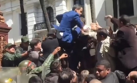 It was Luis Parra who won the post of Assembly president on 5 December, with support from Chavista politicians also keen to see the back of Guaido. Realising he would fail to get the votes he needed Guaido, far from being blocked from entering the National Assembly, boycotted the session. There are videos showing him passing freely through the National Guard and being granted access to the chamber. But in order to manufacture a confrontation, Guaido then refused to enter unless accompanied by former legislator Gilberto Sojo, recently released from prison. Sojo lost his credentials when arrested in a coup plot last year and was refused entry. Guaido made his move, jostling with security guards and scaling a fence as the cameras rolled. After waiting two hours, the televised electoral session began with at least 127 legislators present (quorum is 84) including several of Guaido’s deputies. Since Guaido was absent and no other candidates were nominated, Parra won the vote and was sworn in whilst a punch-up broke out between opposition factions. Brito told Guaido: ‘You could have been the future – now you are and will be the past’.