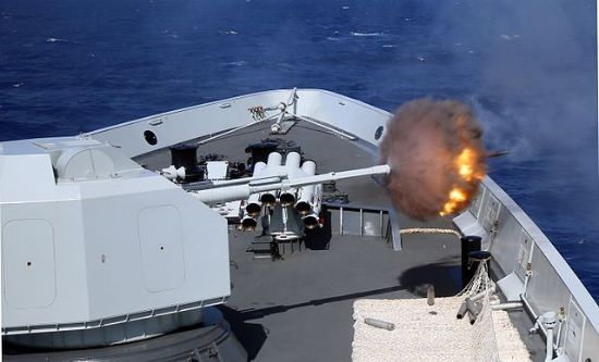 Chinese frigate fires cannon in military exercises, 2016 (photo: public domain)