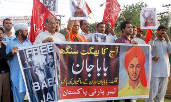 Baba Jan led protest rallies and held numerous press conferences to highlight the struggle and the demands of these 25 families for compensation. In August 2011, a protest rally was held in Gilgit on which the police opened fire, killing a father and a son. The following month, Baba Jan and scores of other of his fellow comrades were arrested on terrorism charges.