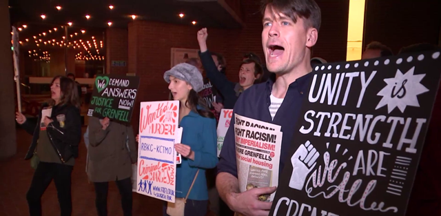 A number of news reporters were present, from the Daily Mail and Channel 4, and protestors from the Save Wornington College campaign made their voices heard, shouting ‘Rotten borough out!’ It is vital that vocal and visible protests continue outside TMO and council meetings, to show the world that we will not let those responsible off the hook. We believe firmly that only direct and radical action can move those in power to address the urgent needs of the working class, for safe, affordable and decent housing, instead of chasing profits until their greed has deadly consequences. Hold the guilty to account! No more Grenfells! End social cleansing now!