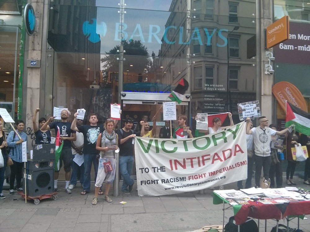 - Barclays Bank – which profits from selling arms to Israel