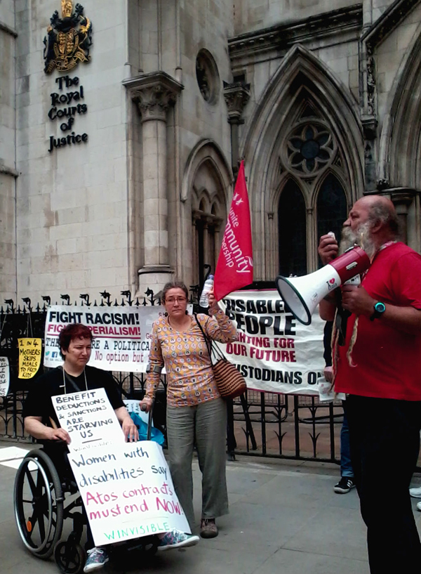 On 8 July 2014, London RCG comrades joined a demonstration outside the Royal Courts of Justice against the hated Work Capability Assessments (WCA), which are used to humiliate, punish and sanction people claiming disability benefits. The protest was called by the Mental Health Resistance Network (MHRN) and Disabled People Against Cuts (DPAC).