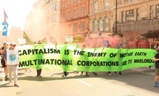 On Saturday 5 June an Earth Strike North of the River march started in Trafalgar Square and took to the streets with a huge banner, ‘Capitalism is the enemy of mother earth: multinational corporations are its warlords’. London branches of Fight Racism! Fight Imperialism! were continuing the campaign against the giant multinational corporations that have their headquarters in our city. From here monopolies operate across the globe directing the plunder of the earth’s resources and exploiting the exploiting environment and people in the endless accumulation of profit. Since 2020 Earth Strike North of the River and comrades from London RCG have targeted Glencore, the mining corporation, Unilever, the consumer goods monopoly and Black Rock, the hedge fund and arms trader.