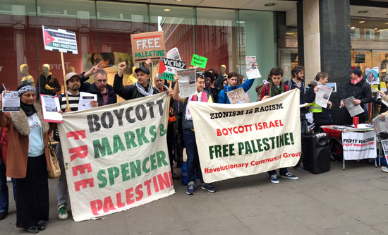 On the 1 April 2017, Victory to the Intifada and the Revolutionary Communist Group organised a rolling protest against businesses that trade with Israel.