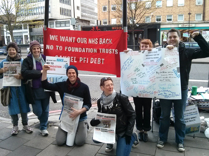 Since early 2012, North London RCG has held regular stalls in Holloway, North London, petitioning against attempts to turn the local Whittington Hospital into a Foundation Trust, a further step towards privatisation.The Hospital Management’s plans have included severe cuts to staff and facilities. Thousands of people have stopped to sign and show their support. With the Hospital’s future more uncertain than ever, we continue to hold weekend stalls in Holloway and Archway. Join us to demand a state-funded, local hospital that meets people’s needs.