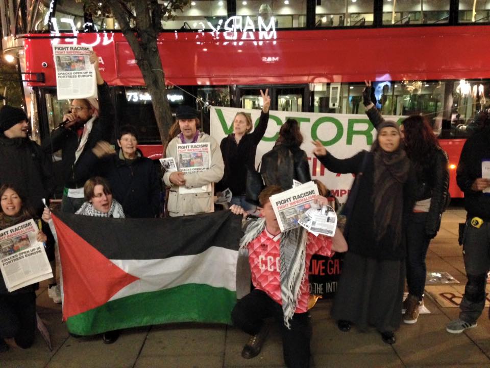 On 15 October, comrades from the RCG joined a variety of pro-Palestine activists on a picket of Marks and Spencer’s flagship shop on Oxford Street. The picket, called and organised by the RCG campaign ‘Victory to the Intifada’, was held weekly for thirteen years in previous Palestinian intifadas (uprisings), and for three months in 2014 following the brutal Israeli assault on Gaza. M&S is one of many British businesses which sell huge amounts of Israeli produce, but it also offers political support to Zionism. The Palestinian people called for a ‘Boycott, Divestment and Sanctions’ (BDS) campaign against Israel in 2003. With the Palestinian people rising up against the Zionist occupation once again, in what many are calling the ‘Third Intifada’, the picket took the message of support for the Palestinian resistance to the streets, and called for a boycott of M&S and all companies supporting Israel. The response was overwhelming, with chants of ‘Free Palestine!’ drowning out the tiny but aggressive Zionist counter-picket. End British support for Israel!