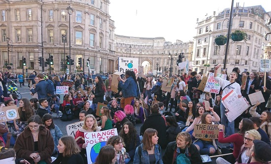 Thousands of youths – school pupils and students – along with their teachers, parents and activists, took to the streets of London on 15 February in a spontaneous outpouring of rage, optimism and political energy. Their target was Westminster and they demanded radical change to urgently save the planet and end climate change which is senselessly destroying their futures. The RCG attended this in solidarity with striking students and to highlight the need for socialism to save the environment. The Labour movement and its hangers-on were taken by surprise, and had almost no presence on the streets, while thousands of youths blocked roads, climbed onto monuments and demanded drivers turn off their engines. There were no organised speeches or A to B marches. The youth, without illusions or investments in the present corrupt system, reminded older generations how to disobey.