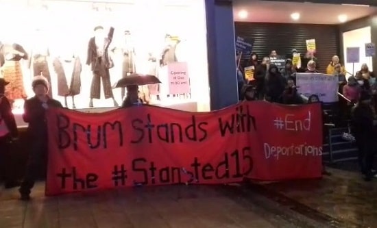 On 18 December Birmingham RCG joined a protest against the guilty verdict received by 15 anti-deportation activists who disrupted a charter flight from Stansted airport. Across the country people were holding protests in support of the Stansted 15 and Birmingham RCG answered the call.