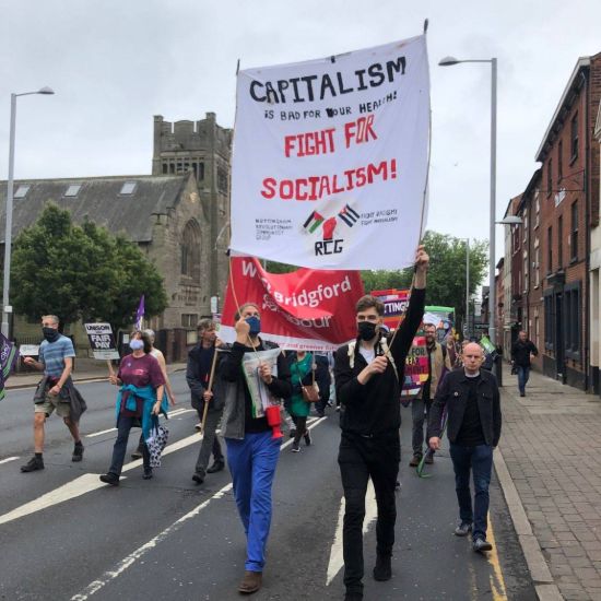 On 3 July, Nottingham RCG and FRFI supporters joined a march for the NHS called by the Nottingham University Hospitals branch of Unison. Around 100 people attended. The demo was part of a national day of action in defence of NHS pay and opposing privatisation. In Nottingham alone, five GP surgeries have recently been gutted and turned over to Operose health, a subsidiary of the US owned Centene, a megacorporation making billions off health care while inflating costs and driving down standards.