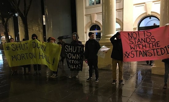On Tuesday 19 December (International Migrants Day), Nottingham RCG supported a mobilisation in solidarity with the Stansted 15. The mobilisation follows the conviction on terrorism charges of the Stansted 15 protestors, who earlier in the year took direct action to stop a charter deportation flight (http://www. revolutionarycommunist.org/ britain/fight-racism/5164- defend-the-stansted-15). Many people turned out on a rainy evening for a march through the city centre. Our comrade spoke to the demonstration about the role that Britain’s border controls play in defending imperialism, and of the need for a response based on revolutionary class politics.