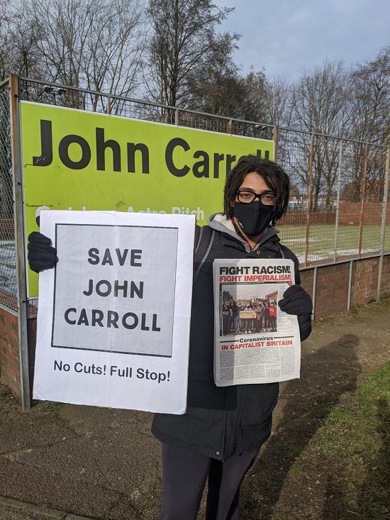 But local people are fighting back. FRFI supporters in Nottingham have joined the community campaign to Save John Carroll leisure centre and swimming pool. The John Carroll centre is a vital community resource, based in Radford, an inner-city ward with high levels of poverty. It is one of the last public centres left in the area and acts as lifeline for many, hosting community groups for vulnerable and elderly people and a host of sporting activities and programs for the people of Radford.