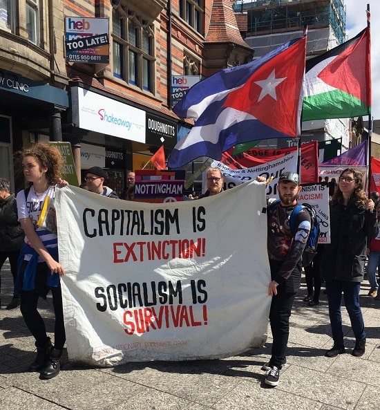 We are supporters of the Revolutionary Communist Group (RCG) in Nottingham, England, and we need your help to support our educational and campaign work. Since our branch was set up in 2015, we have been active on the streets and in communities, fighting for decent housing, welfare and employment, resisting state racism in the form of deportations and immigration prisons, opposing imperialist aggression against the people of Syria, Iran, Kurdistan and Palestine, and defending revolutionary struggles in Venezuela, Bolivia and socialist Cuba. We have run dozens of open public meetings and educational programmes, involving hundreds of people, and have played a major role in building wider campaigns, including Nottingham Youth Strike for Climate and Nottingham Housing Justice Forum.