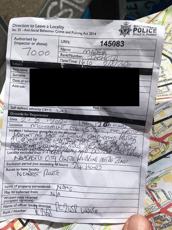 This is the fifth banning order used against anti-racists in Newcastle since 13 June, we have the evidence. Fascists are working through Northumbria Police to dictate what political activity is acceptable in the city. All it takes is for one racist to make a complaint and police move in to gag anti-racists.