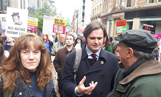 On Tuesday 4 June the SWP led Stand Up To Racism campaign in Glasgow held a protest on Buchanan Street steps against US President Trump’s visit to the UK.