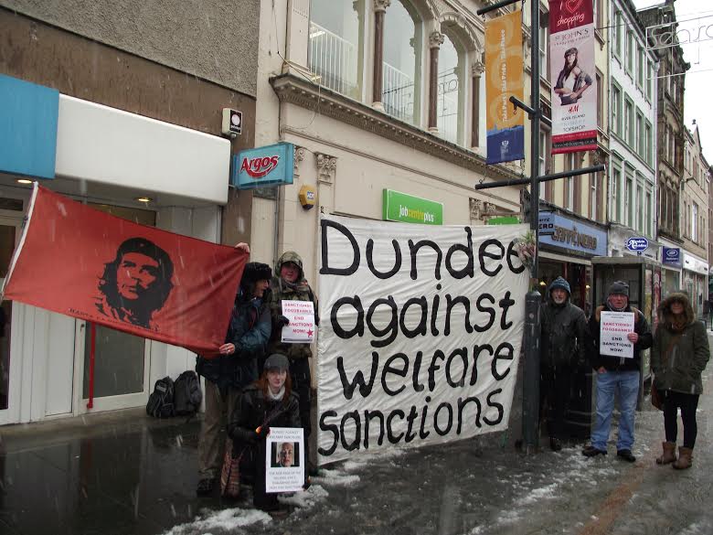 2) Dundee Against Welfare Sanctions will also support campaigning work in Perth, Arbroath, Blairgowrie and elsewhere and will co- operate with other campaigning groups like Scottish Unemployed Workers Network, Edinburgh Coalition Against Poverty and others, to take forward the fight against sanctions, workfare and other attacks on welfare. Join Us!’