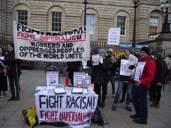 On Saturday 21st November Edinburgh Revolutionary Communist Group held an open mic street rally on Princes Street. Comrades from Dundee and Glasgow RCG, Spanish workers in Edinburgh, the Women in Black, Edinburgh in Protest, joined us on the streets and the mic was open for anyone to speak out against racism, war and austerity. Activists raised the issue of Sheku Bayoh, a young Sierra Leoneon man killed by Police Scotland in Fife earlier this year, talked of the newly announced £70 million of cuts by Edinburgh Council that threaten school music lessons, lollipop crossing guides, tenement lighting and libraries alike, spoke out against the racist Prevent strategy being rolled out across Edinburgh university targeting Muslim students and the racist immigration bill currently in parliament that is set to drive refugees and migrant workers into more misery and oppression. Spanish comrades spoke out against Operation Pandora in Spain which is currently arresting anti capitalist activists en-mass, seeking to politically gag anyone who opposes Spain’s policies of racism and austerity. Comrades detailed the hypocrisy of Britain’s military interventions in Syria and Iraq, highlighting the booming arms and oil trade Britain enjoys with Saudi Arabia, main funders of ISIS and stood in solidarity with Socialist Cuba and movements for socialism across Latin America, beacons of hope that show a better world is possible! We are committed to creating a democratic political space on the streets, to provide a counterbalance to the racist, capitalist, warmongering media forced down our throats.