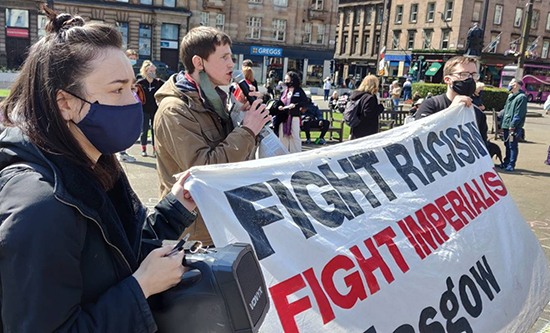 It is clear that for the anti-racist movement to grow and challenge the racist British state, democracy within the movement is needed. But when we asked the organisers of today’s protest if an RCG supporter could speak, pointing out that for decades our organisation’s newspaper has been called Fight Racism! Fight Imperialism! (the back page of this issue has articles in solidarity with asylum seekers and opposing immigration detention centres) we were given that classic excuse that there was ‘no time’. Time there was, however, for representatives of parliamentary parties; SNP and Labour Party election candidates and a Green Party councillor. Meanwhile communists – anti-imperialists and anti-capitalists – those who condemn the state apparatus as racist were denied a platform.