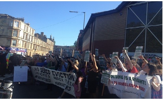 Glasgow Fight Racism! Fight Imperialism! will continue to support protest and organisation against these racist evictions, pushing for open democratic space within these protests for all anti-racist and anti-imperialist voices to be heard, and for the expansion of the protests into wider layers of the working class in Britain resisting attacks on living standards, Universal Credit and the evictions resulting from these.
