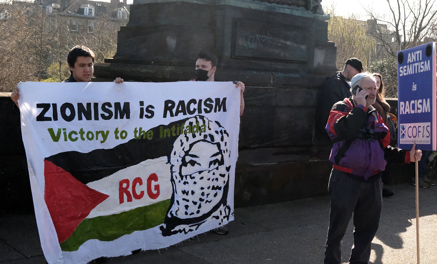 Anti-racist activists from across Scotland have organised to oppose Friends of Israel participation on SUTR marches since 2017. In 2018, visiting Palestinian firefighters and the Muslim Council of Scotland withdrew their support for the march owing to Friends of Israel participation. More organisations, including the Scottish Palestine Solidarity Campaign, boycotted the march. Those who went on to form the ZIR coalition, including FRFI, recognised that Friends of Israel’s inclusion on SUTR marches represented a step back and a threat to the anti-racist movement and so it had to be actively opposed on the streets. In 2018 we managed to stop the Zionists from joining SUTR’s march and in 2019 mobilised a large counter protest.