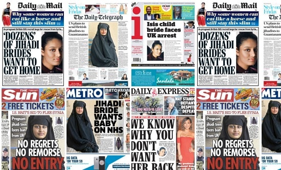 Loyd’s interview was a set-up, with the questions clearly designed to whip up public hatred. The furore which followed was entirely predictable and Shamima’s picture rapidly appeared on the front page of almost every newspaper, usually accompanied by headlines describing her as an ‘unrepentant jihadi bride’. TV discussion shows were filled with talking heads opining on what should be her fate, while the internet was awash with uncontrolled vitriol in which the sexism and racism were undisguised. All this culminated in the announcement by Home Secretary Sajid Javid on 19 February that Shamima would be stripped of her British citizenship, and would therefore not be able to return even if she could make it out of the camp – it having already been made clear that no Foreign Office official was going to be sent to get her.
