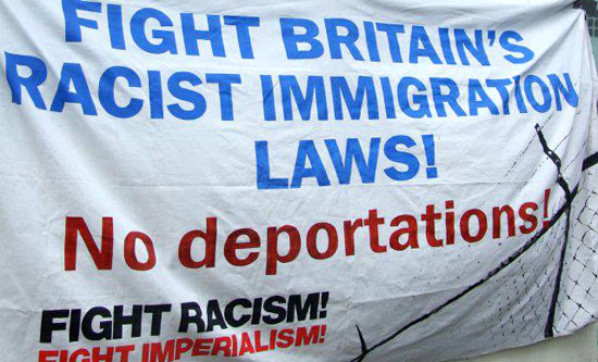 The approach of ‘managed migration’, first proclaimed by Labour Home Secretary David Blunkett in 2003, has been consolidated over the last decade. The ideal of policymakers across the EU is one of ‘circular migration’. This is an attempt to reduce workers as far as possible to units of labour power, flexible to the needs of capital to the point that their very existence within Britain is conditional on the sale of their labour power on terms set by the ruling class. In Britain this culminated in the points-based immigration system for non-EU migrants introduced by Labour in 2008, with a series of tiers and points allocated based on recognised skills and English language proficiency. Meanwhile migration routes that are not reliant on demand for labour have been increasingly restricted. Restrictions on legal rights have been backed by racist intimidation, from the advertising vans driven round London last summer, threatening ‘In the UK Illegally? Go Home or Face Arrest’, to a series of gloating pictures and videos posted from the Home Office Twitter account on Valentine’s Day, showing UKBA officers breaking up allegedly ‘sham’ marriage ceremonies. Immigration raids on businesses have become routine, as have immigration stops at tube stations in London.