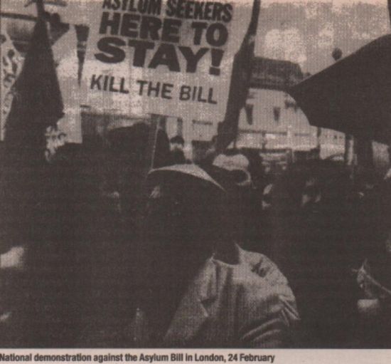 Judging from Dianne Abbot’s presence on the Asylum Bill demonstration and a message to the march (drowned by jeers) from Jack Straw, some might think that Labour was opposing this Bill. In fact Labour’s opposition is a fiction. Labour will vote against it in Parliament. Why not? It won’t stop it being passed. But what does Labour opposition amount to? Jack Straw made it plain: