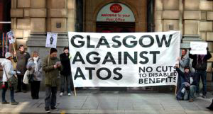 Glasgow Against Atos (GAA) has been stepping up its campaign for scrapping both the Work Capability Assessment and the Department of Work and Pensions’ contracts with Atos. Such has been its success that the Scottish Daily Mail has ‘exposed’ the GAA as a violent left-wing conspiracy! As the campaign has developed so the Strathclyde Police has increased its monitoring and harassment. On 22 February, over 50 cops were involved in trying to close down a protest against Atos, arresting two campaigners, both members of FRFI, one for using a megaphone, and the other for allegedly trying to liberate a prisoner from custody. Both were released following protest phone calls to the police station where they were being held and were given bail conditions banning them from protests in Glasgow city centre.