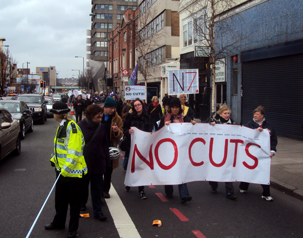 Across the country, Labour and Con-Dem councils are sharpening their axes, ready to make massive cuts to jobs and services nationwide. Islington is no different. The borough is facing an estimated £335 million in cuts, with £52 million set for this year alone. On 2 February 2011, Islington’s Labour-run council published an official list of 200 cuts to be made to services across the borough, to be introduced from April this year. Speaking at a press conference, Labour council leader Catherine West said ‘We’ve done our best to provide a battered shield to protect the vital services people rely on.’ The cuts budget that she and her Labour colleagues has drawn up says otherwise.
