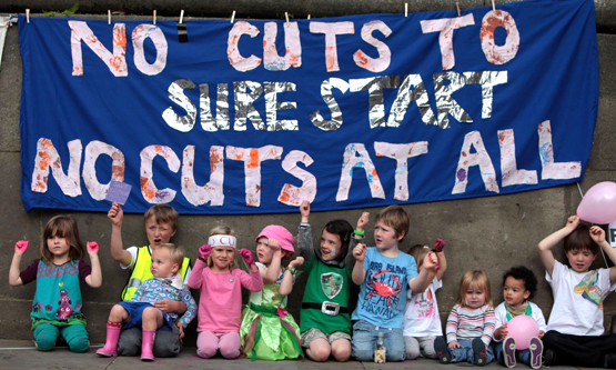 Childcare resources are stretched to the limit. Despite the 2006 Childcare Act requiring local authorities to provide childcare for working parents, only 43% actually do, down from 54% last year. Real spending per child on childcare, Sure Start services and early education has fallen by a quarter between 2009-10 and 2012-13. Childcare places were cut by 40,000 under the Coalition government. Campaigning groups report 600-800 Sure Start centre closures.