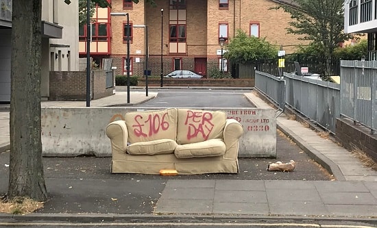 The most visible effect of the crisis is seen on the streets of the country’s major cities, but rough sleeping is only the extreme tip of the iceberg. There are also thousands of so-called ‘hidden homeless’, forced into what Crisis describes as the damaging ‘permanent impermanence’ of sofa surfing, many for months or even years at a time. But the majority of homeless households, especially those with children, are shunted into temporary accommodation that is largely not fit for purpose. In the first quarter of 2019 there were 84,740 households, including 126,020 children, housed in this way. As FRFI has regularly reported, temporary housing is the new slum accommodation: overcrowded, cramped, infested with vermin, wracked with damp and mould, with broken and dangerous furniture and fixtures. Much of it is in B&Bs, converted offices, repurposed derelict buildings and even shipping containers. Yet, scandalously, private companies continue to rake in millions of pounds by renting these slums out to councils.