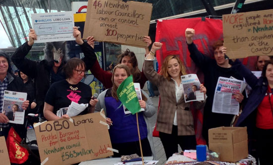 Since 2010, total Newham spending on council services has been cut by 27% and spending on social housing has declined approximately 50%.’ Despite housing being in the top three priorities for Newham residents, the council is spending significantly less money on housing than debt repayments to banks for its dodgy loans, known as LOBOs – £20m on housing services compared to over £30m on banks in 2014/15.