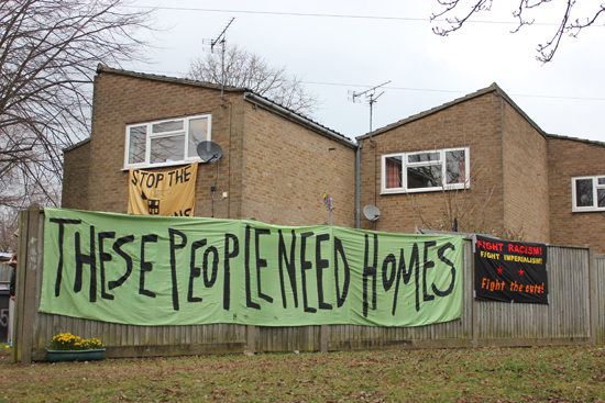 The occupation follows the forced removal of 151 residents from their homes over the past few months. Some have had to go into privately rented accommodation they cannot afford, others into temporary accommodation with terrible living conditions. Many families have been rehoused so far away that their children are having to get up at 5am to undertake the long journey back to get to school on time. Nine families remain on the estate and are currently facing eviction proceedings.