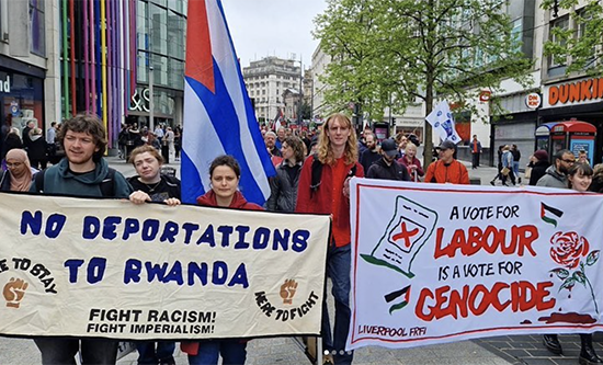 But the Labour Party will offer no relief. It supports the overall benefit cap. It will not end the two-child benefit policy despite the fact that such a measure (now supported by Suella Braverman) would lift hundreds of thousands of children out of poverty. Labour will not lift benefit levels to reduce the number of people who face destitution, despite the fact that there were 3.8 million who experienced it at some point during 2022. It will not offer any extra funding to the NHS, and suggests that soaring waiting lists will be addressed through the use of volunteers, overtime working, and using private facilities. It has fully supported government policy on both Ukraine and AUKUS and at times has been even more militaristic in its approach. In line with Tory ambitions, it wants to raise defence spending to 2.5% of GDP, and is absolutely committed to NATO, and to Trident renewal. It has opposed the government’s Rwanda deportation policy solely on the grounds of ‘efficiency’ and ‘economy’ while dubbing asylum seekers ‘illegal migrants’, and proposes to militarise the response to Channel crossings. Labour’s unstinting support for Zionism, its refusal to oppose arms sales to the Israeli state or to condemn what are obvious Israeli war crimes, let alone the genocidal onslaught that is taking place in Gaza, confirm its character as a completely racist, imperialist, anti-working class party. A vote for Labour will be a vote for genocide.