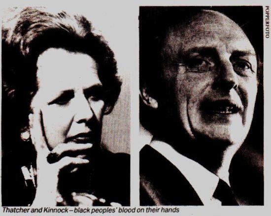 To accommodate their views the miners and print workers were betrayed, left Labour Councils have been branded ‘loony’ and abandoned to their fate, the fight against rate-capping collapsed, Militant were expelled as ‘aliens’ and ‘maggots’, black people were condemned for fighting back against police racism when one black woman was killed and another paralysed by police at Tottenham and Brixton, the defeat at the Greenwich by-election was blamed on supports for the rights of gays and lesbians. And now a black woman, Sharon Atkin, has been deselected as a parliamentary candidate for describing the Labour Party as racist and daring to proclaim her right to speak for black people.