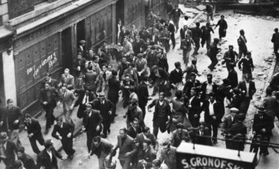 The watershed of the dispute came when Mosley announced that his blackshirts would march through the East End on 4 October 1936. It was a deliberate anti-Jewish provocation. Jacobs and his friends knew that the fascists could be sure of massive police protection. This was not the first battle with the blackshirts: many had waged an unremitting fight to prevent fascist meetings and marches. Arrests and injuries were commonplace; it was the stuff of Jacobs’ everyday life. As soon as Mosley’s march was announced in the East End anti-fascists began to organise to stop them, adopting the slogan ‘They shall not pass’ from the Spanish anti-fascist movement.