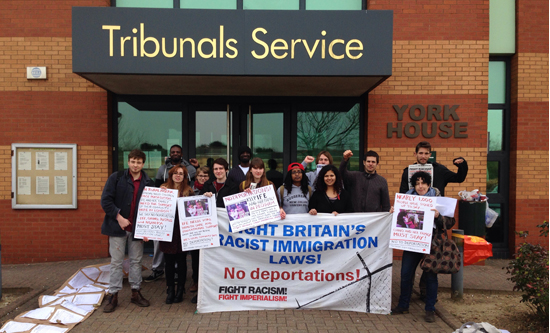 Fight Racism! Fight Imperialism! opposes all immigration detention and all Britain’s racist immigration laws and apparatus. Britain is an imperialist country, which has colonised and plundered half the world and continues to foment war and carry out invasions around the globe, causing asylum seekers to flee and seek sanctuary. It is a capitalist country, which uses immigration powers in an attempt to regulate the flow of labour according to the dictates of the market. The British government has no right, therefore, to criminalise asylum seekers, people who come here seeking work or any other category of migrant, and anyone opposing British capitalism and imperialism must stand in solidarity with the struggles of migrants.
