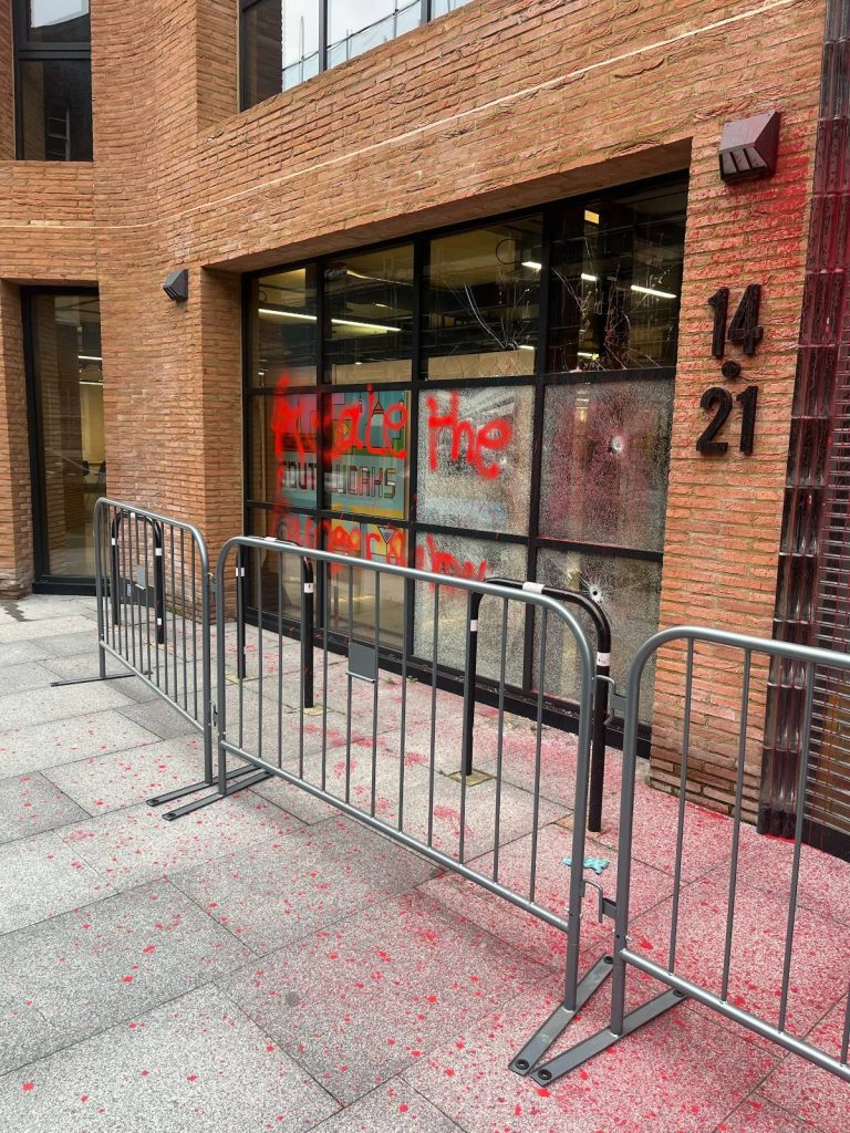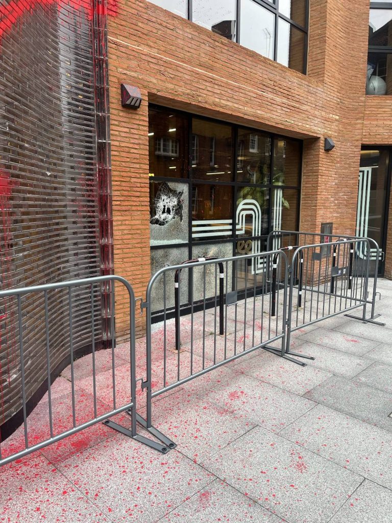 On Monday 29 December, a group called Justice For The Hunger-Strikers took action against the Headquarters of the British Labour Party, at 20 Rushworth Street, Southwark, London. The activists covered the front of the building in red paint, often used by pro-Palestinian direct action groups to symbolise the blood shed by the Palestinian people, and also broke windows.